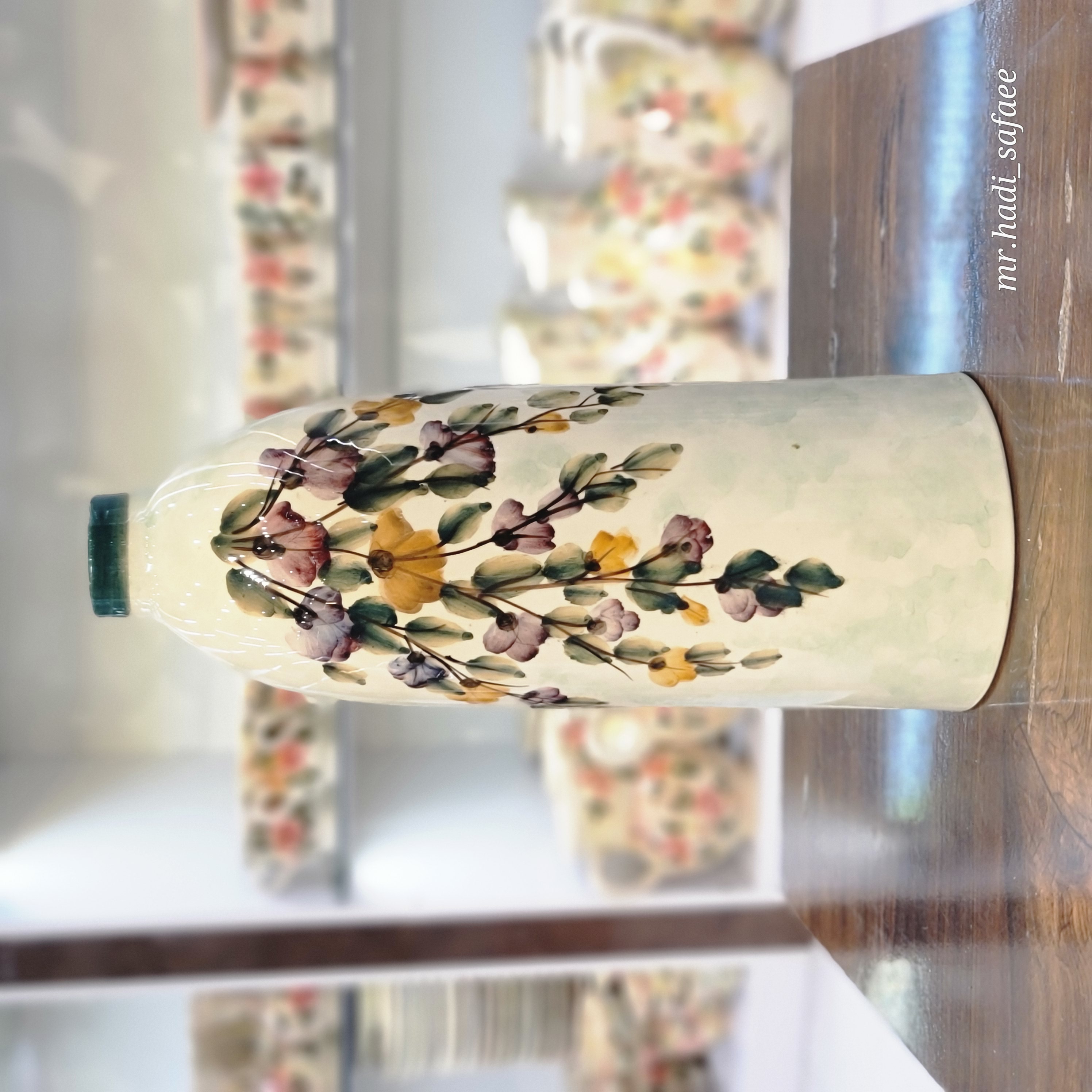 -نقوش روی ظروف در پخت سوم روی لعاب اعمال شده و تا دمای ۷۵۰ درجه پخت شده و ثابت میباشد