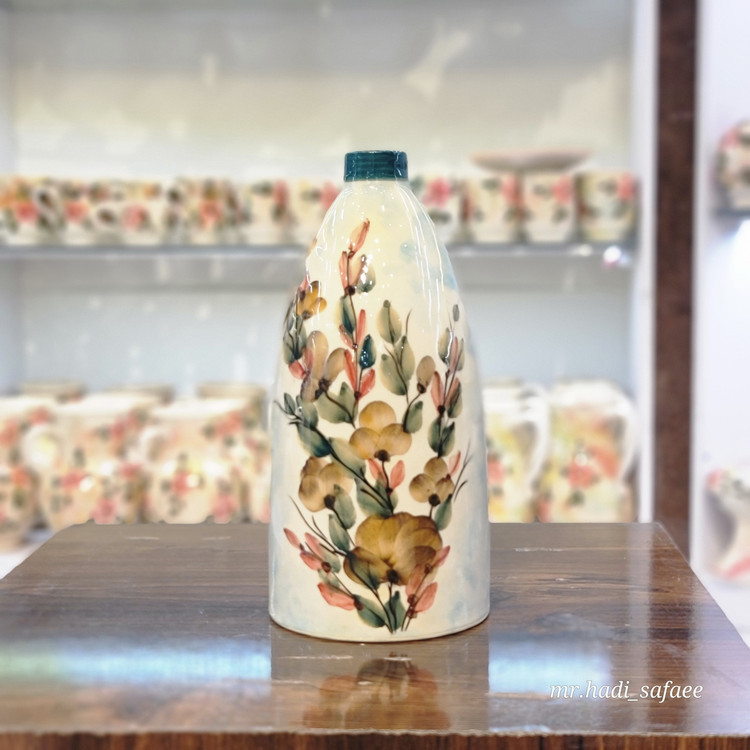 -نقوش روی ظروف در پخت سوم روی لعاب اعمال شده و تا دمای ۷۵۰ درجه پخت شده و ثابت میباشد