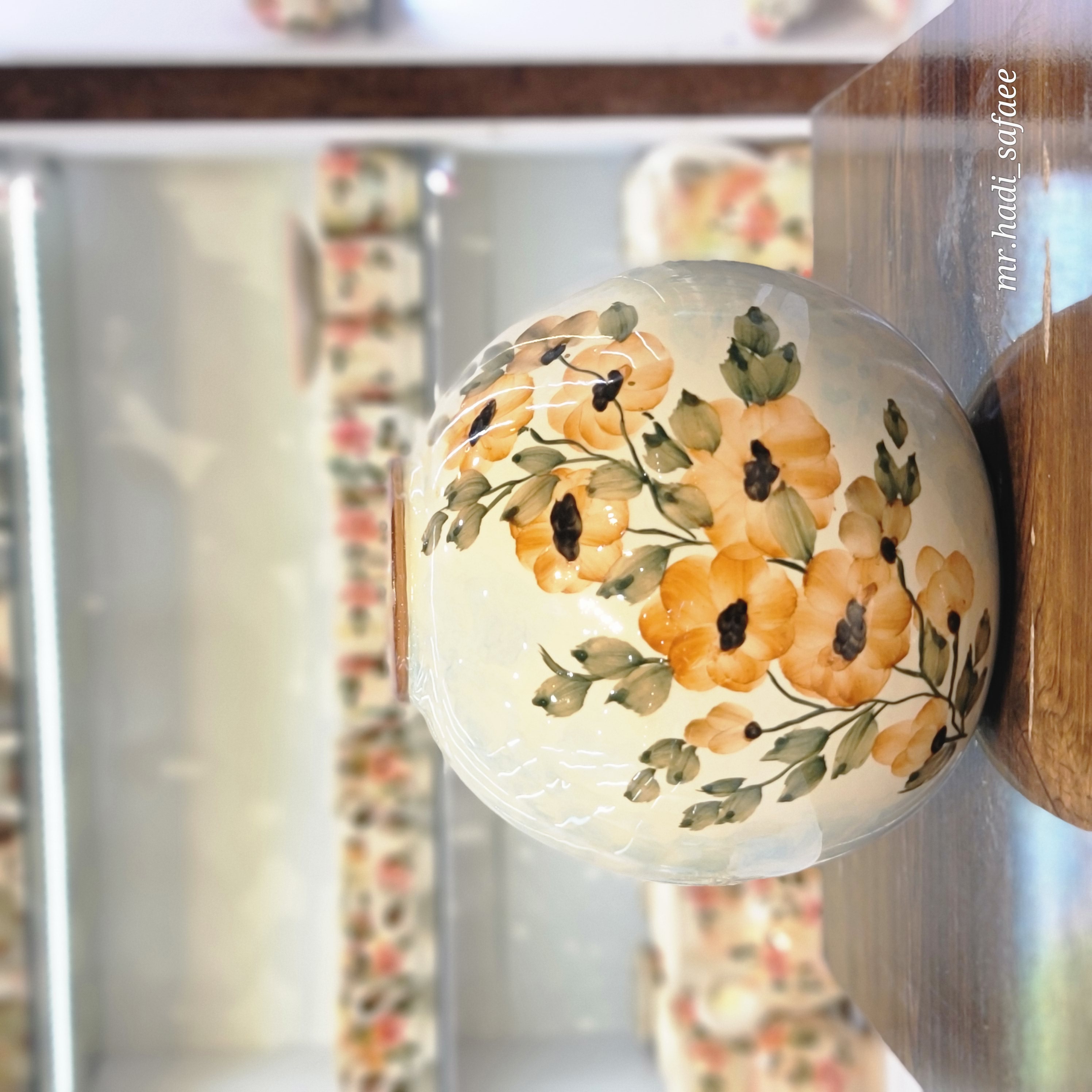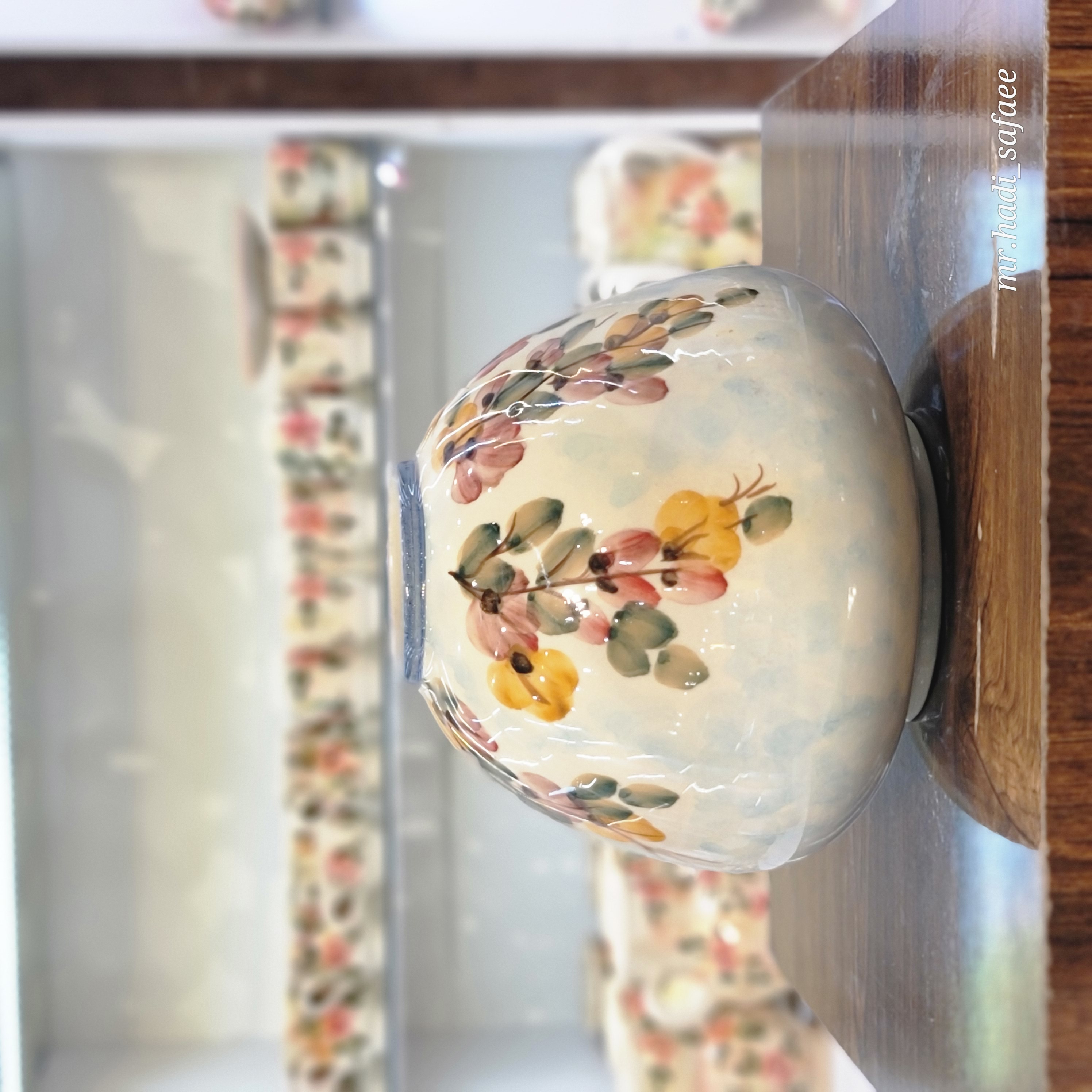 -نقوش روی ظروف در پخت سوم روی لعاب اعمال شده و تا دمای ۷۵۰ درجه پخت شده و ثابت میباشد