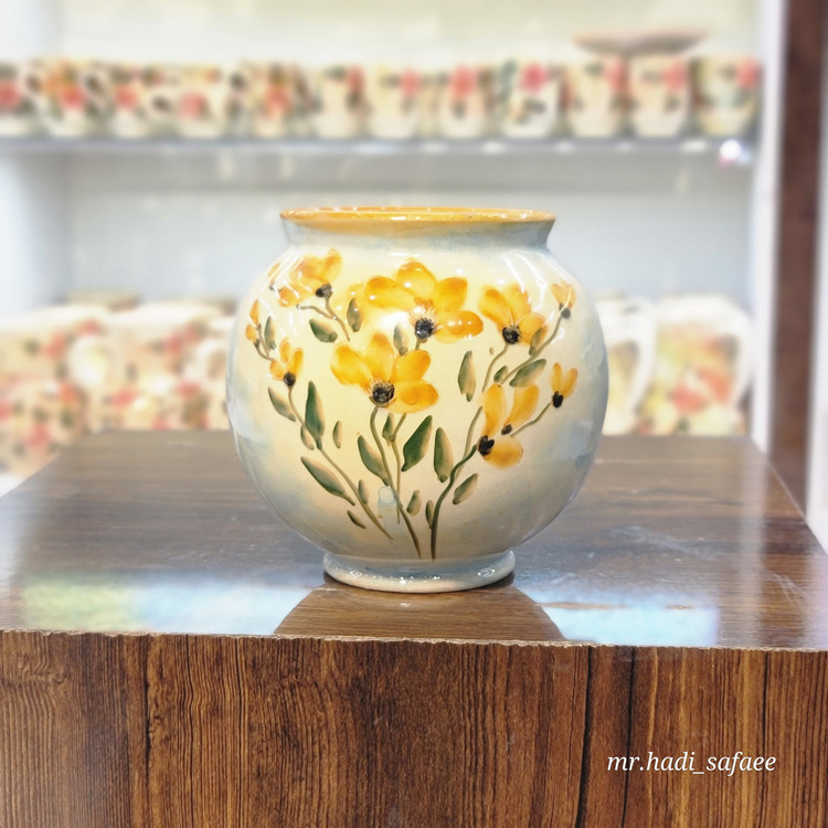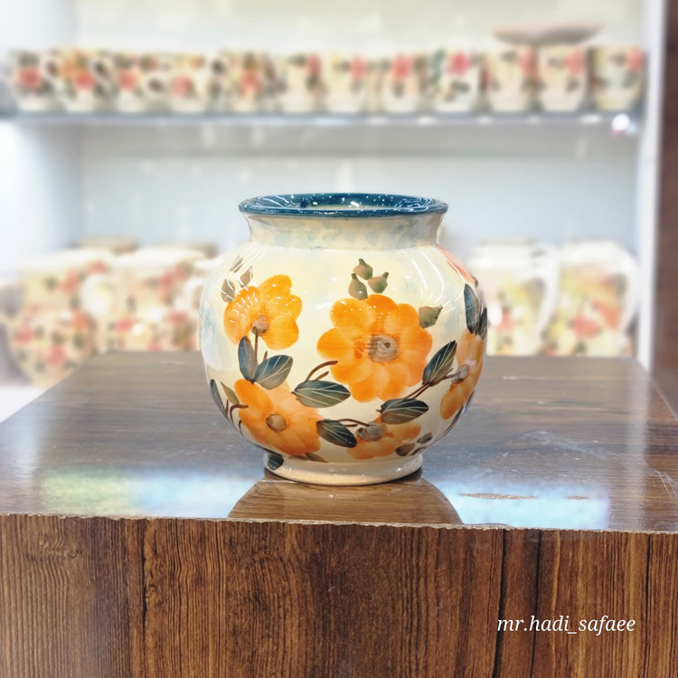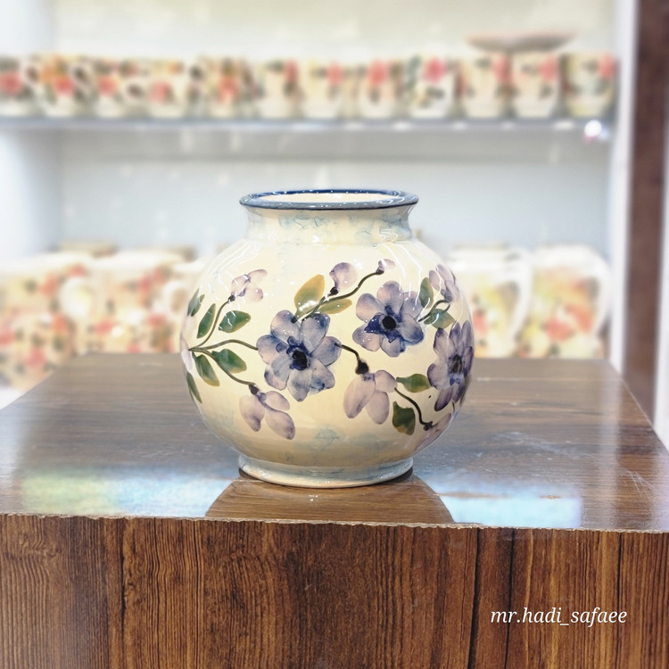 -نقوش روی ظروف در پخت سوم روی لعاب اعمال شده و تا دمای ۷۵۰ درجه پخت شده و ثابت میباشد