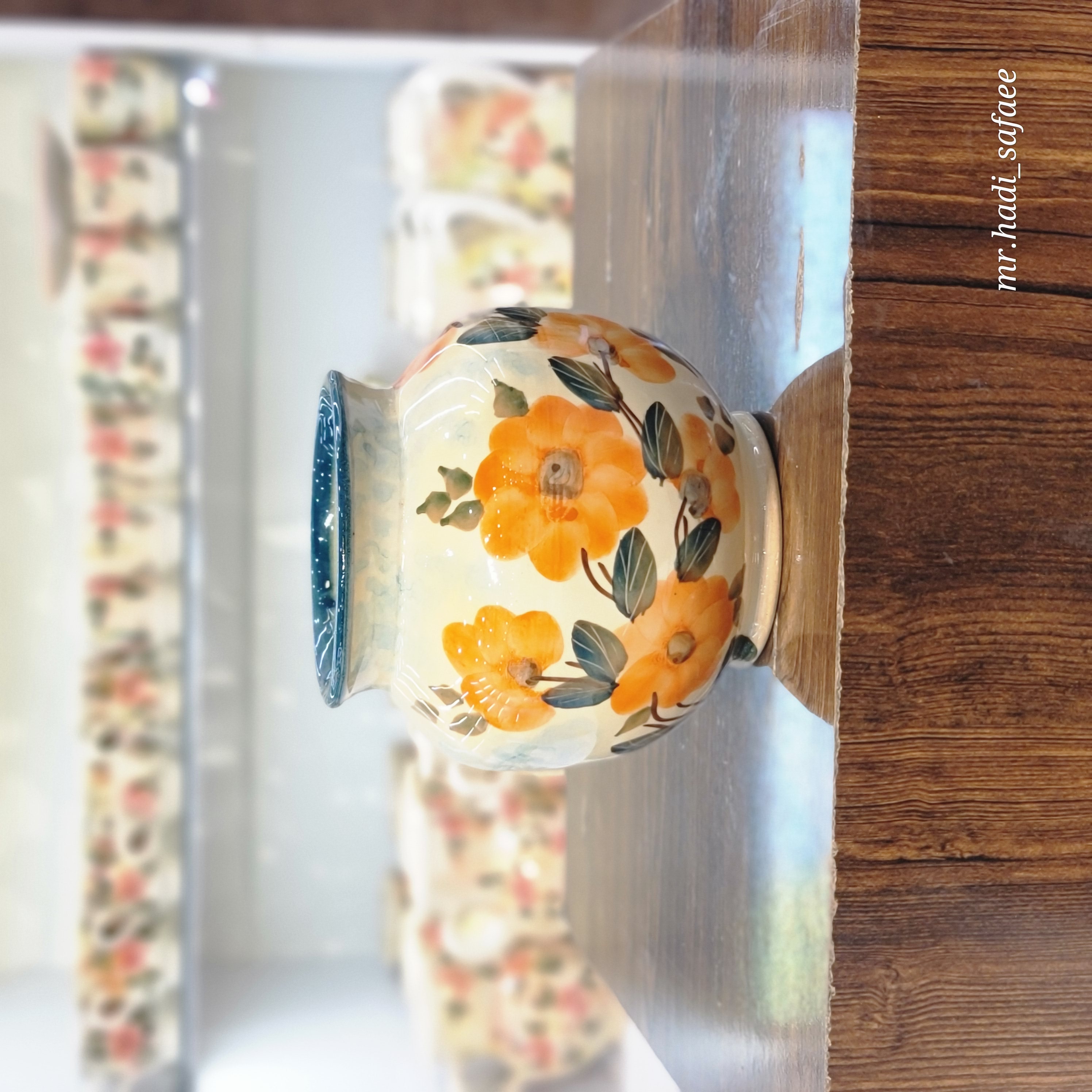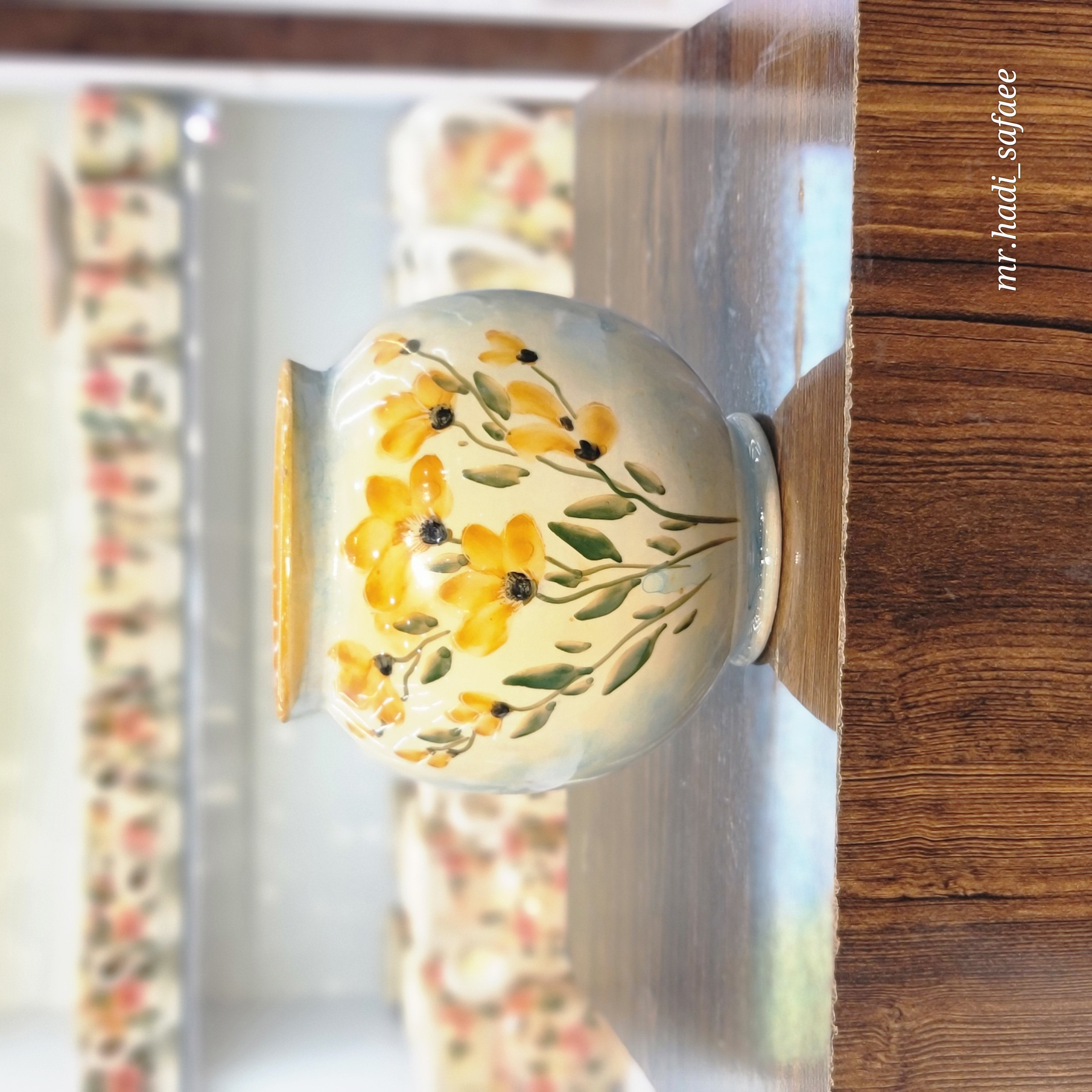-نقوش روی ظروف در پخت سوم روی لعاب اعمال شده و تا دمای ۷۵۰ درجه پخت شده و ثابت میباشد