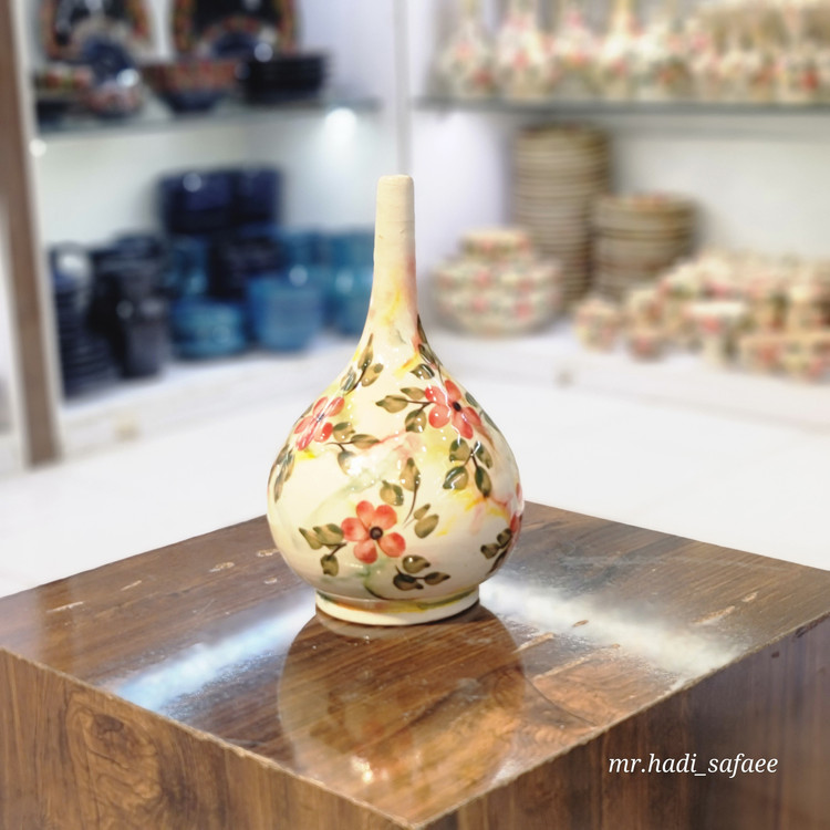 -نقوش روی ظروف در پخت سوم اعمال شده و تا دمای ۷۵۰ درجه پخت شده و ثابت میباشد
