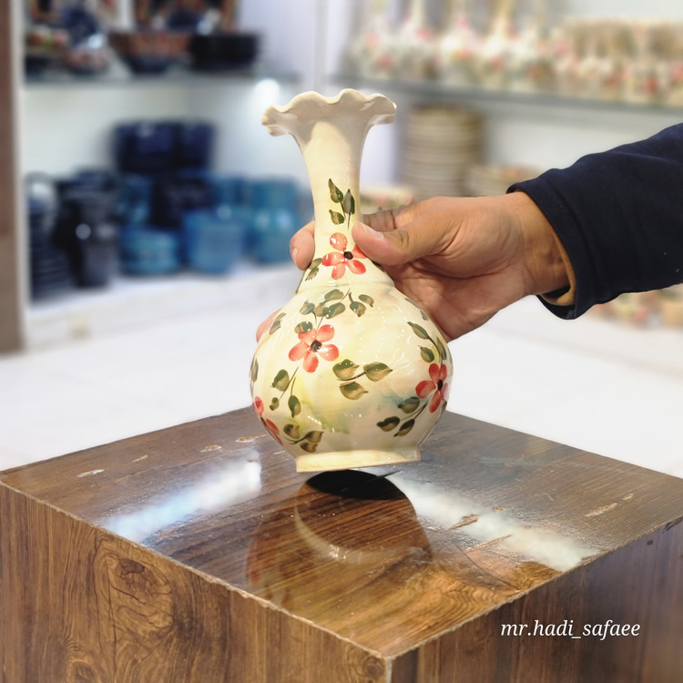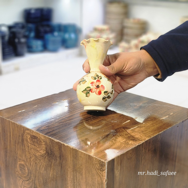 -نقوش روی ظروف در پخت سوم اعمال شده و تا دمای ۷۵۰ درجه پخت شده و ثابت میباشد