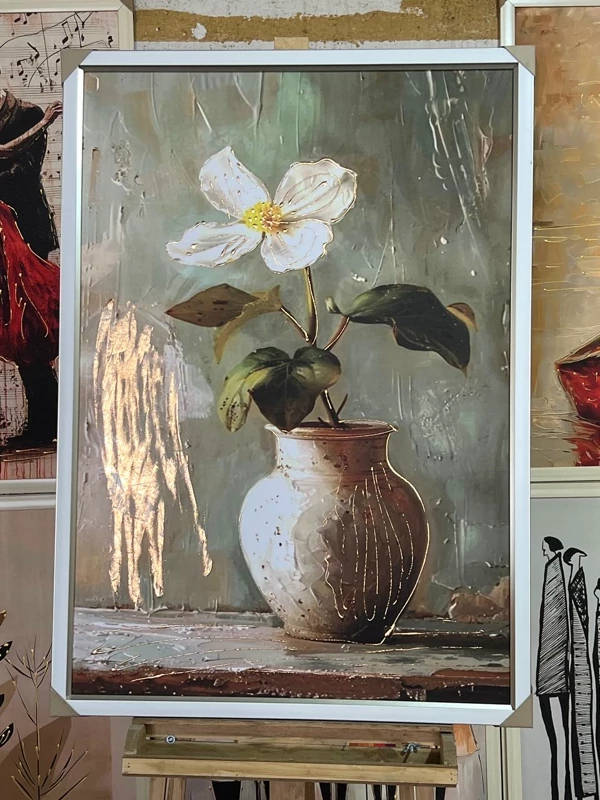 تابلو تکسچر طرح گل و گلدان