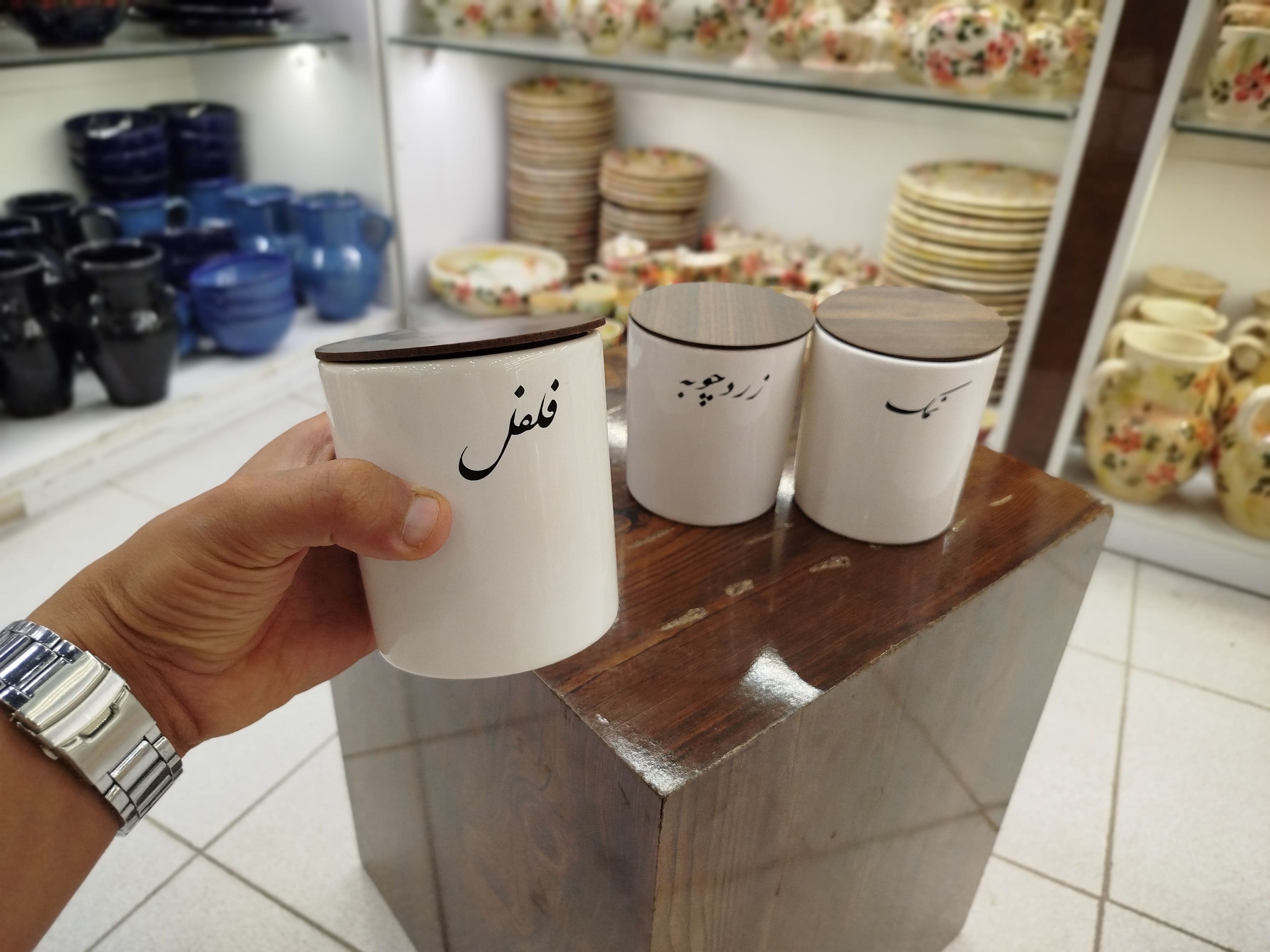 ست پاسماوری سرامیکی ۳ تکه ادویه با درپوش چوبی