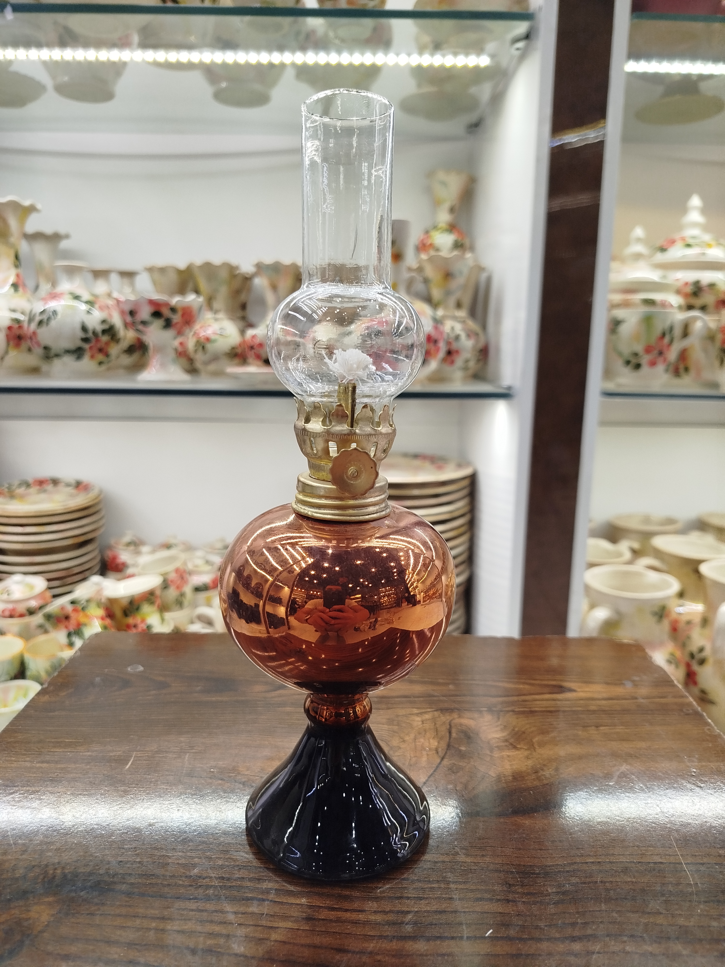 چراغ گردسوز لعاب مسی بهمراه گلدان