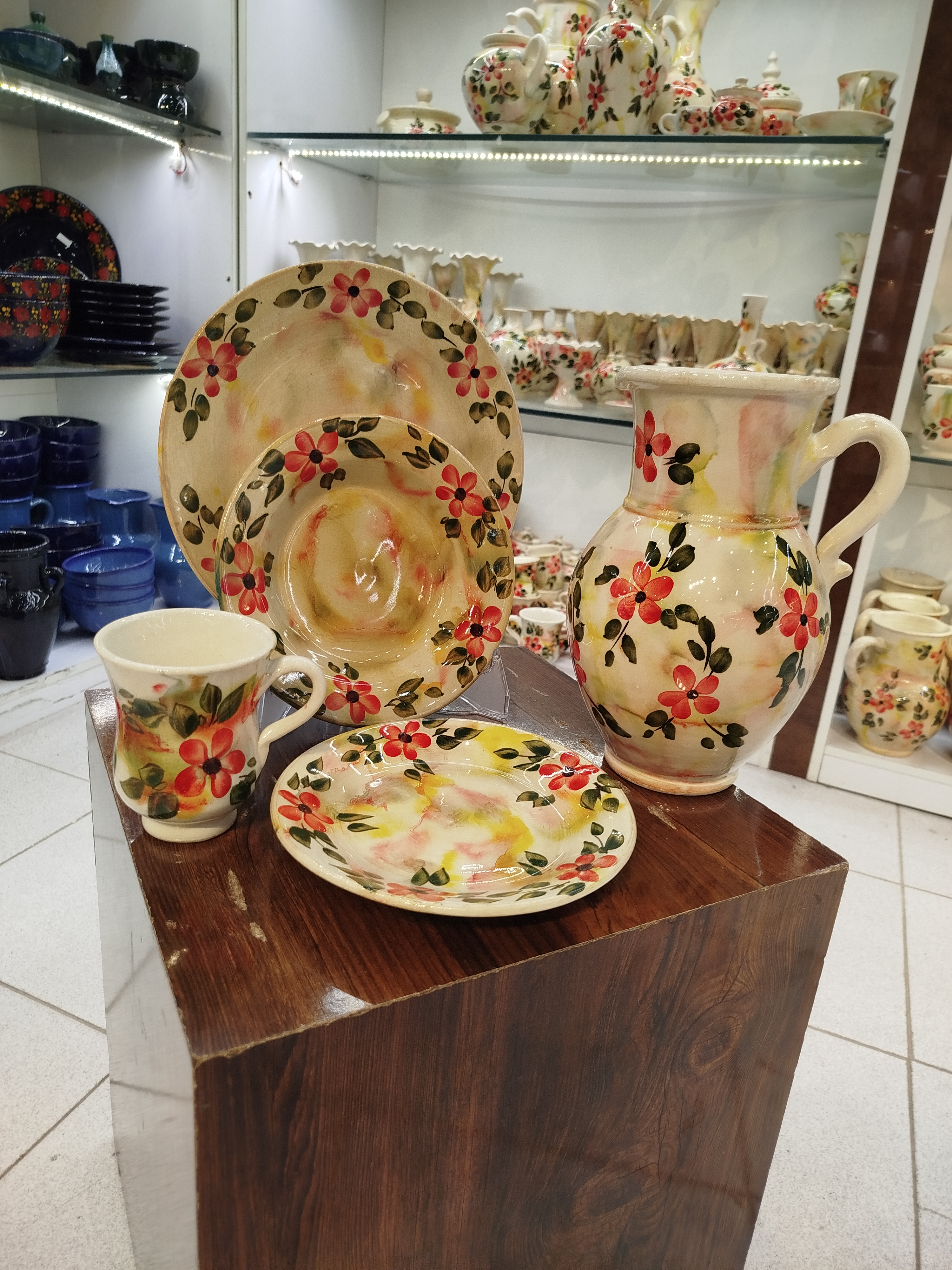 سرویس غذاخوری 26 پارچه نقاشی کاردست زیرلعابی طرح آبرنگی