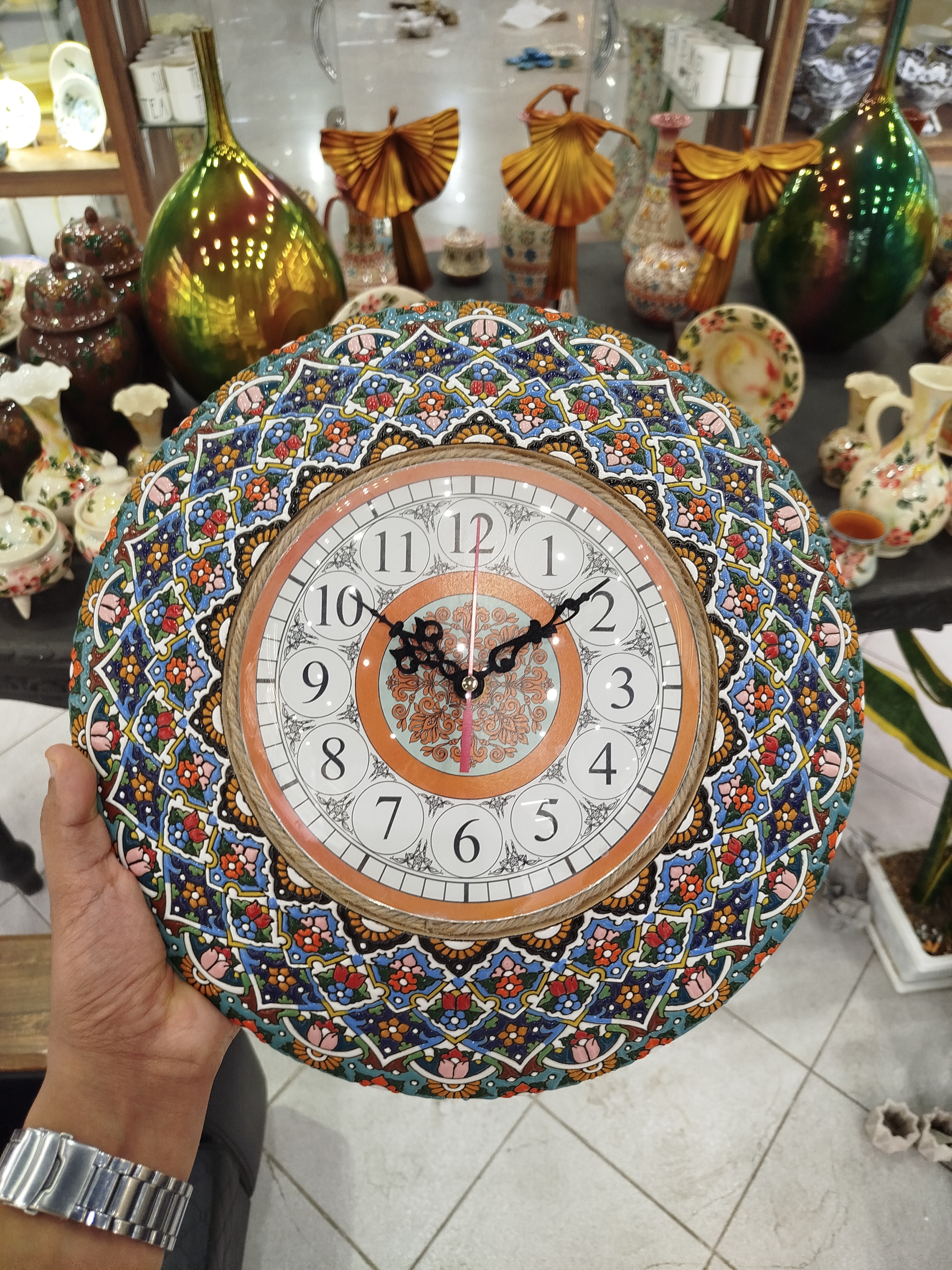 ساعت میناکاری سنتی کار دست اساتید هنرمند همدان طرح سپر شاهنامه